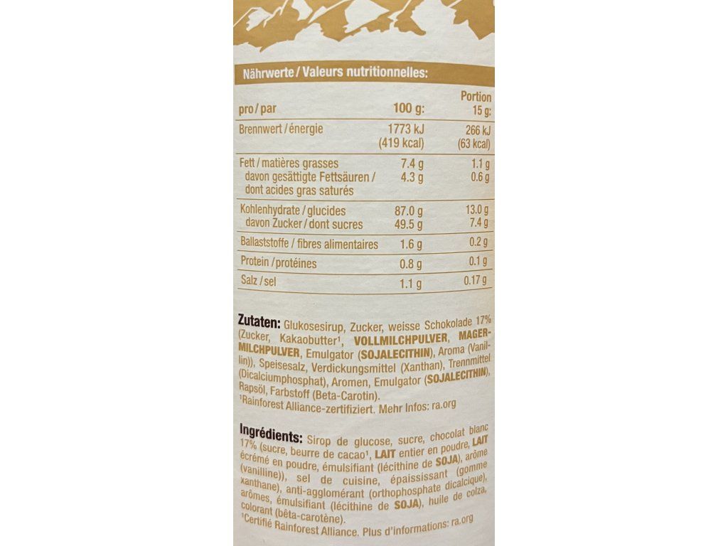 - obsahuje 17% originální švýcarské čokolády