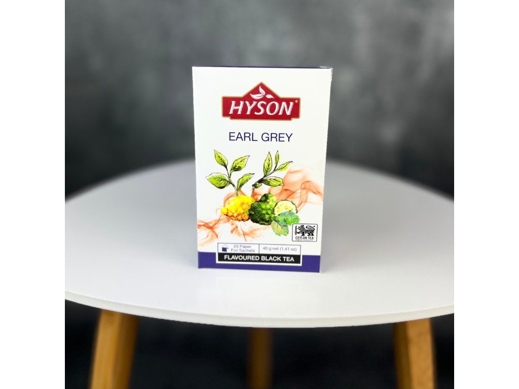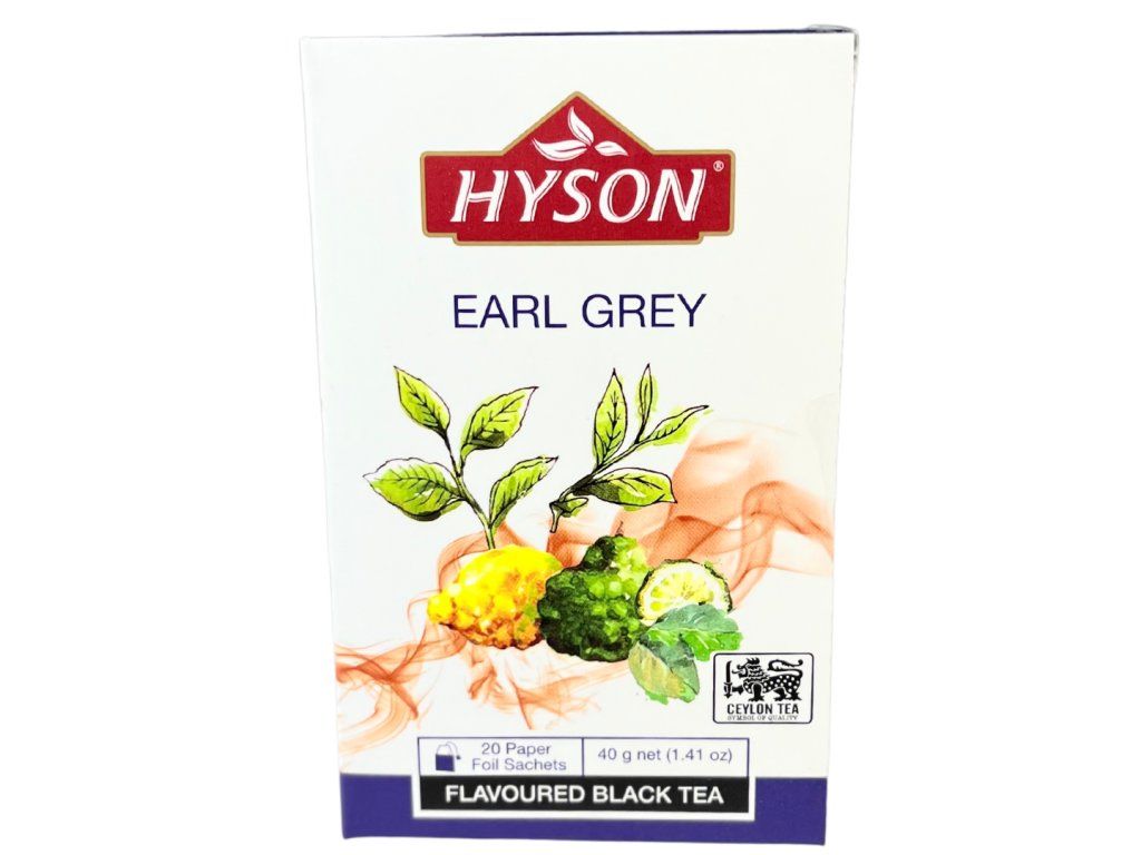 Prémiový 100% černý čaj HYSON ze Srí Lanky s příchutí bergamotu. Porcovaný čaj v nálevových sáčcích, jednotlivě balený do obálek pro uchování vůně a chuti.