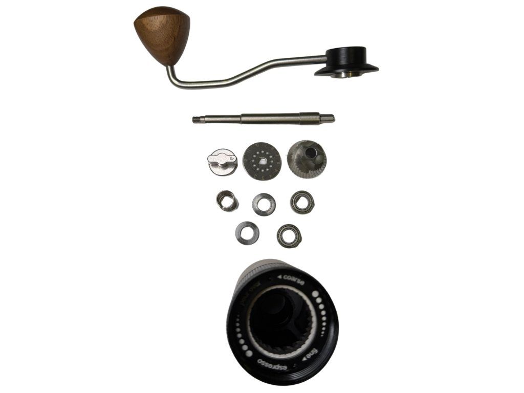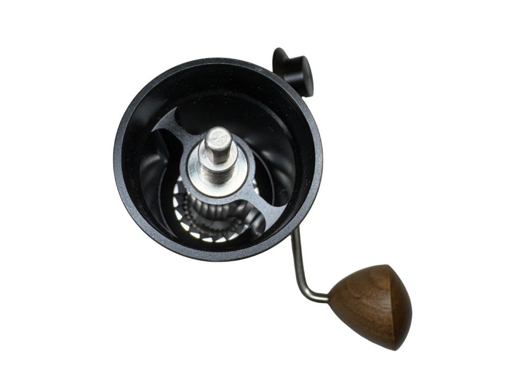 Tento ruční mlýnek na kávu kombinuje robustní kovové tělo, přesné ocelové mlecí kameny a elegantní dřevěnou rukojeť kličky, díky které padne skvěle do ruky. Vrchní část mlýnku je vyrobena z kovu s imitací dřevěného povrchu, což mu dodává luxusní vzhled.